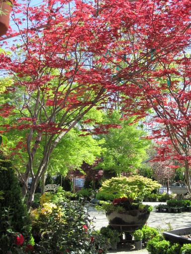 Keywords: gardens trees autumn pink red fall leaves green plants seasons changing seasons seasonal ornamental decorative leafy branches potted plants bright day