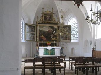 | Keywords: Garding St.-Christian-Kirche 3.jpg de Die St -Christians-/St -Bartholomäus-Kirche steht in Gardings Ortsmitte auf einer elf Meter hohen Warft der höchsten Erhebung Eiderstedts Der Kirchturm ist noch heute der höchste Punkt Eiderstedts und diente lange als Seezeichen Mit ihrem gotischen Orgelprospekt von 1512 hat die Kirche den ältesten Orgelprospekt Nordeuropas Das ehemals gotische hohe spitze Dach der Kirche wurde bei einer Renovierung 1854 durch ein besser in die Landschaft passendes und vor allem weniger windanfälliges niedrigeres Dach ersetzt Die Kirche geht auf die 1117 errichtete einschiffige kreuzförmige Backsteinkirche St Christian zurück Sie war ursprünglich den Heiligen Maria Magdalena Christian und Bartholomäus geweiht Die Kirche wurde im Zeitraum von 1483 bis 1488 zu einer zweischiffigen gotischen Hallenkirche umgebaut wobei ein Schiff den männlichen und ein Schiff den weiblichen Gottesdienstbesuchern diente Nachdem Hermann Tast 1524 noch auf dem Marktplatz die erste Reformationspredigt Eiderstedts gehalten hatte setzte sich die Reformation durch Christian III von Dänemark bis 1527 in der Region durch Sichtbar ist dies in der Kirche an der zerschlagenen Altarplatte mit der Aufschrift žHic sunt reliquiae reconditae Hier sind die Reliquien aufbewahrt Blick in den Chorraum mit dem Altar Der dreiflügelige Gemäldealtar ist ein Werk des niederländisch-tönning ˜schen Malers Marten van Achten der später Hofmaler am Schloss Gottorf in Schleswig wurde Dieser Altar gilt als Hauptwerk des Manierismus in Schleswig-Holstein own Klaaschwotzer 2013-09-07 Cc-zero St -Christians-Kirche Garding |