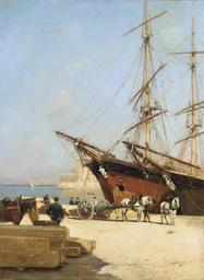 | Keywords: Garibaldi-Christie's.jpg Artwork Creator Joseph Garibaldi 1897 Oil canvas Size cm 54 73 5 object history credit line bottom right J Garibaldi 97 accession number Christie's online 4801029 PD-old-70-1923 Joseph Garibaldi Paintings of Marseille 19th-century sailing ships in paintings 19th-century paintings location missing 1897 paintings |