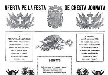 | Keywords: Garibaldi naples anniversary.jpg en Manifest celebrating first year anniversary of Garibaldi entring in Napoli print in Pulicenella e lo diavolo zuoppo 7 september 1861 Author 1861-09-07 Giuseppe Garibaldi Italian Risorgimento Coats of arms of Naples Coats of arms of Kingdom of Italy PD-Art |