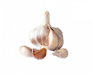 Keywords: garlic bulb clove cloves skin close-up details isolated white background vegetable culinary ingredient food edible
