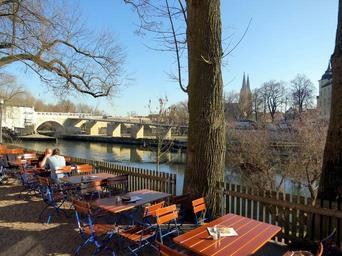 Keywords: Garten Spital Blick über die Donau.JPG de Der Garten des Inselspitals mit Blick auf Donau Steinerne Brücke und Dom 2014-03-13 own Flo Sorg cc-zero Uploaded with UploadWizard Wikipedia Süddeutschland 2014-04