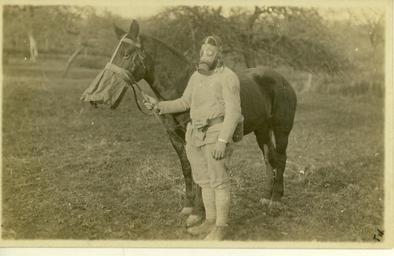 | Keywords: world war one worldwarone gas mask horse wwi monochrome outdoor Local Accession Number: 1864 Description: A soldier and his horse in gas masks. Photographer: Unknown Source: Don Kiscaden Size: 5.25x3.25 Medium: Print, Black and White Date: c. 1918 Local Accession Number: 1864 Description: A soldier and his horse in gas masks. Photographer: Unknown Source: Don Kiscaden Size: 5.25x3.25 Medium: Print, Black and White Date: c. 1918 | ||||