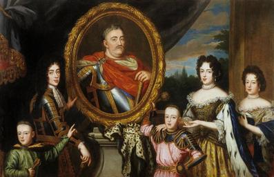 | Keywords: Gascar Apotheosis of John III Sobieski.jpg Artwork Creator Henri Gascar 1691 oil canvas cm 151 231 Institution Wawel Royal Castle accession number 3222 object history credit line http //www konkursmoda wilanow-palac pl/index php header_id 4 lang PL Copyright expired PD-Art PD-old-100 DEFAULTSORT 1691; Apotheosis of John III Sobieski Henri Gascar French paintings in the Wawel Castle Sobieski family Baroque paintings of families Group portraits with 5 persons Apotheosis of modern time leaders 1691 paintings John III of Poland Portraits of Maria Kazimiera Sobieska Jakub Ludwik Sobieski Princess Teresa Kunegunda Sobieska Aleksander Benedykt Sobieski Konstanty Władysław Sobieski Portraits with image of family member |