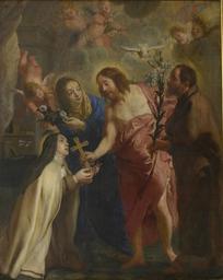 | Keywords: Gaspar de Crayer - The vision of St Theresa of Avila.jpg Artwork Creator Gaspar de Crayer oil canvas cm 164 130 Sint-Kwintenskerk Leuven object history PD-old-100 17th-century paintings of Teresa of Ávila History paintings by Gaspar de Crayer Sint-Kwintenskerk Leuven |