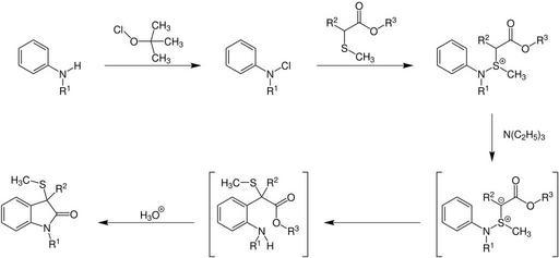 Keywords: Gassman Oxindol-Synthese.svg de Oxindol-Synthese nach Gassman 2013-09-14 18 16 09 own Charrow cc-zero Uploaded with UploadWizard Chemical reactions