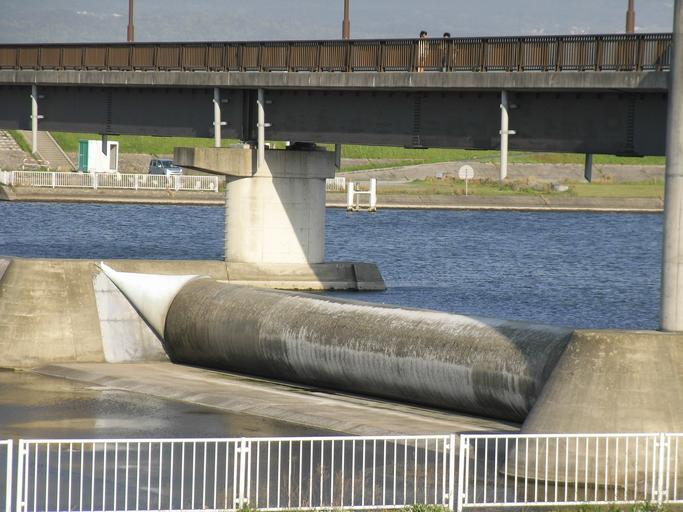 Keywords: Gate-1.JPG rubber dam<br/> ラバー ム(ゴム起伏式ゲート) Dam 河 等兵's file 2007-05-12 河 等兵 copyrightFreeUse 河 等兵 Hino River Inflatable rubber dams Weirs in Japan Yonago Tottori