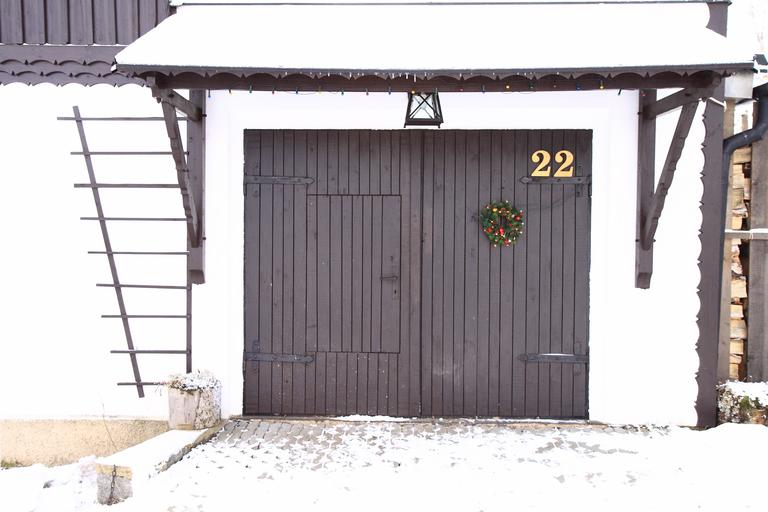 Keywords: gate gateway door wood wooden house open winter snow