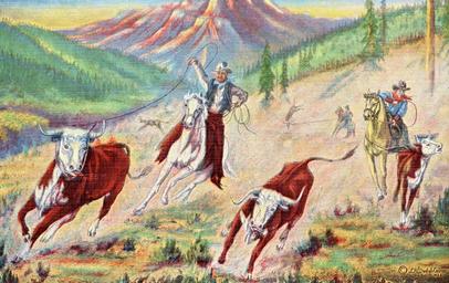 Keywords: vintagepostcard cattle cowboys roundup western horses