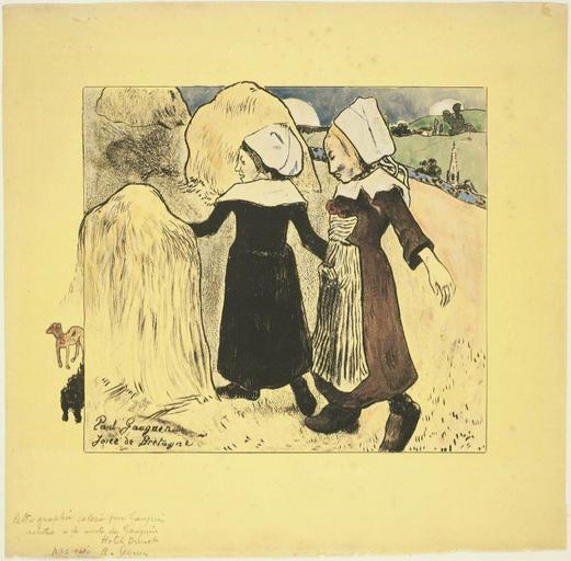 | Keywords: Gauguin - Suite Volpini K07Aa.jpg Artwork Creator Paul Gauguin Suite Volpini Joies de Bretagne Suite Volpini Goigs de Bretanya Volpini Suite Joys of Brittany 1889 Zincografia estampada en negre sobre paper vitel·la groc safrà i acolorida a mà Zincography printed in black on canary yellow wove paper and hand-colored Zincographie en noir sur papier vélin jaune zafran cm 20 24 1 Museum of Fine Arts Boston Boston http //www mfa org/collections/search_art asp recview true id 163561 Museum of Fine Arts Boston Kornfeld 7Aa / Guérin 2 Other versions <gallery> File Gauguin - Suite Volpini K07Ab portfolio jpg Kornfeld 7Ab File Paul Gauguin 032 jpg oil on canvas </gallery> PD-old-100 Suite Volpini Engravings in the Museum of Fine Arts Boston |