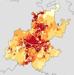 | Keywords: Gauteng 2011 population density map.svg ffffcc <1 inhabitant/km² ffeda0 1 “3 inhabitants/km² fed976 3 “10 inhabitants/km² feb24c 10 “30 inhabitants/km² fd8d3c 30 “100 inhabitants/km² fc4e2a 100 “300 inhabitants/km² e31a1c 300 “1000 inhabitants/km² bc0026 1000 “3000 inhabitants/km² 800026 >3000 inhabitants/km² Projection is Albers Equal-Area Conic with standard parallels at 25 5° S and 31 5° S and origin at 28 5° S 25 5° E Statistics South Africa's Census 2011 is the source of the basic population data The map results from my own processing of the data Htonl 2013-10-22 http //beta2 statssa gov za/ page_id 425 The following license applies to the population data on which the map is based the user acknowledges Stats SA as the source of the basic data wherever they process apply utilise publish or distribute the data and also that they specify that the relevant application and analysis where applicable result from their own processing of the data The following tag applies to the map itself Demographic maps of South Africa Maps of Gauteng |