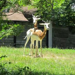 Keywords: gazelles antelopes wildlife nature animal enclosure zoo outdoors portrait looking pair