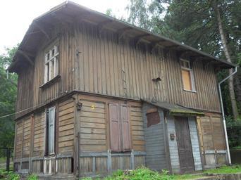 Keywords: Gdańsk Cmentarz Garnizonowy - dom dozorcy.jpg pl Gdańsk Cmentarz Garnizonowy - zabytkowy drewniany dom dozorcy z końca XIX wieku own Artur Andrzej 2011-08-16 Cc-zero Garnizonowy Cemetery in Gdańsk Wooden architecture in Gdańsk