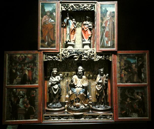 Keywords: Gdańsk God the Father Polyptych.jpg Gdańsk ca 1425 early other date century 16 polychromy gilt wood / tempera panel Institution National Museum Warsaw 0 accession number Śr 59 object history ProvenanceEvent transfer Church of St Catherine Gdańsk ProvenanceEvent 1946 transfer National Museum in Warsaw credit line Figures of God the Father Virgin and Child and Saint Margaret are earlier dated ca 1425 while the shrine and upper figures were created later early 16th-century c 1529 Lech Majewski 2008 Mystic Middle Ages Bosz p 105 own See below Cc-zero DEFAULTSORT 1425-1529; God the Father Polyptych 15th-century sculptures in the National Museum in Warsaw 16th-century sculptures in the National Museum in Warsaw Medieval sculptures in the National Museum in Warsaw Pomeranian paintings in the National Museum in Warsaw Pomeranian sculptures in the National Museum in Warsaw Saint Catherine church in Gdańsk |