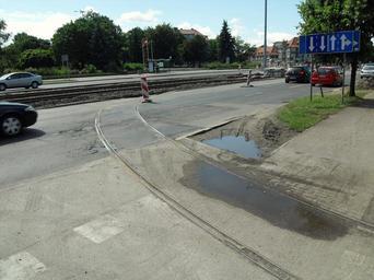 Keywords: Gdańsk Strzyża aleja Grunwaldzka – stare tory tramwajowe.JPG pl Gdańsk Strzyża al Grunwaldzka Stare tory tramwajowe own Artur Andrzej 2011-07-03 Cc-zero Grunwaldzka Avenue in Gdańsk Strzyża Tram transport in Gdańsk 2011 in Gdańsk