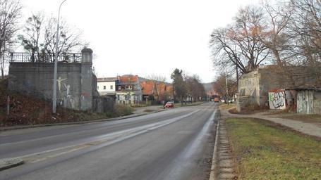 Keywords: Gdańsk – wiadukt ulica Polanki.jpg pl Gdańsk pozostałości wiaduktu nad ciągiem ul Polanki i Chrzanowskiego own Artur Andrzej 2011-12-13 Cc-zero Polanki Street old viaduct in Gdańsk Chrzanowskiego Street in Gdańsk 2011 in Gdańsk