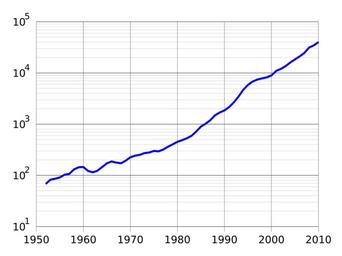 | Keywords: GDP of China in RMB-semilog.svg en GDP of China from 1952 to 2010 in billion Yuan Renminbi Data from http //www chinability com/GDP htm GDP growth in China 1952-2011 2014-12-13 own Delphi234 other versions File GDP of China in RMB svg linear File GDP of China in hundred million RMB-semilog svg in hundred million Yuan cc-zero Uploaded with UploadWizard Economy of the People's Republic of China GDP chart Diagrams labelled with numbers only | ||||