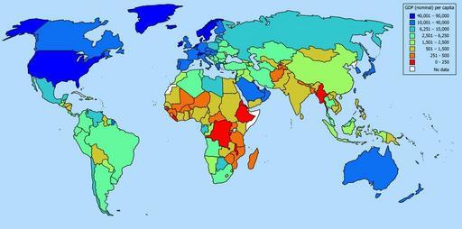 | Keywords: GDP nominal per capita world map IMF figures for year 2006.png GDP nominal per capita Using wikipedia's world map and information from IMF and wikipedia's article en List of countries by GDP nominal per capita own 2007-04-18 Van helsing 2004 map 2005 map Van helsing Required changes from April-2007 to October-2007 database update done wikitable Country April 2006 database October 2007 database Change - Finland 40 196 819 39 993 574 From group +40 000 to group +10 000 - The Gambia 325 33 222 88 From group +250 to group +0 - Guatemala 2 508 11 2 333 68 From group +2 500 to group +1 500 - Paraquay 1 483 235 1 610 724 From group +500 to group +1 500 - Sao tome and Principe 474 2 773 185 From group +250 to group +500 Changes from Sep-2006 to April-2007 database Old 2005 map to this 2006 map wikitable Country September 2006 database April 2007 database Change - Rwanda 242 209 260 53 From group 1 to group 2 - Sierra Leone 222 542 253 796 From group 1 to group 2 - Cambodia 430 325 503 266 From group 2 to group 3 - Haiti 478 312 527 586 From group 2 to group 3 - Kyrgyz Republic 473 361 541 993 From group 2 to group 3 - Lao People's Democratic Republic 485 215 583 041 From group 2 to group 3 - Uzbekistan 444 053 605 225 From group 2 to group 3 - Armenia 1139 803 1888 851 From group 3 to group 4 - Azerbaijan 1492 911 2336 029 From group 3 to group 4 - Georgia 1479 824 1778 941 From group 3 to group 4 - Indonesia 1283 169 1640 315 From group 3 to group 4 - Syrian Arab Republic 1464 015 1645 246 From group 3 to group 4 - Angola 2128 864 2758 375 From group 4 to group 5 - Bosnia and Herzegovina 2383 87 2884 656 From group 4 to group 5 - El Salvador 2467 718 2619 354 From group 4 to group 5 - Guatemala 1994 735 2508 11 From group 4 to group 5 - Jordan 2316 696 2544 065 From group 4 to group 5 - Maldives 2349 889 2863 642 From group 4 to group 5 - Equatorial Guinea 6205 447 7801 652 From group 5 to group 6 - Russia 5348 896 6856 081 From group 5 to group 6 - Venezuela 5026 41 6736 205 From group 5 to group 6 - Estonia 9727 364 12203 45 From group 6 to group 7 - Slovak Republic 8775 232 10157 963 From group 6 to group 7 - Finland 37504 049 40196 819 From group 7 to group 8 - Netherlands 38617 879 40571 399 From group 7 to group 8 - Sweden 39693 638 42382 674 From group 7 to group 8 GDP maps of the world GDP per Capita |