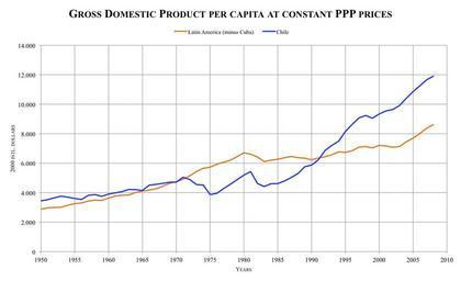 | Keywords: GDP per capita LA-Chile.png graph en Gross domestic product per capita at constant PPP prices 1950-2008 Latin America minus Cuba in orange and Chile in blue 2000 international dollars Sources http //www cepal org/deype/cuaderno37/esp/index htm ECLAC http //www cepal org/deype/cuaderno37/datos/1 1 1 1 xls 1 1 1 1 Producto interno bruto http //www cepal org/deype/cuaderno37/datos/A 1 xls A 1 Población total and http //www cepal org/deype/cuaderno37/datos/A 5 xls A 5 Tipos de cambio ; http //www imf org/external/pubs/ft/weo/2012/01/weodata/index aspx IMF's April 2012 WEO database http //www imf org/external/pubs/ft/weo/2012/01/weodata/weorept aspx pr x 31 pr y 8 sy 2000 ey 2000 scsm 1 ssd 1 sort country ds br 1 c 213 2C263 2C268 2C273 2C218 2C278 2C223 2C283 2C228 2C288 2C233 2C293 2C238 2C243 2C248 2C253 2C298 2C258 2C299 s PPPEX grp 0 a Implied PPP conversion rate for 2000 Latin America data includes Argentina Bolivia Brazil Chile Colombia Costa Rica Dominican Republic Ecuador El Salvador Guatemala Haiti Honduras México Nicaragua Panama Paraguay Peru Uruguay and Venezuela Does not include Cuba due to missing data Note GDP in constant 2000 US dollars was multiplied by the 2000 exchange rate to the US dollar and divided by the 2000 implied PPP conversion rate The result was divided by the population of the respective year own Cantus 2010-02-22 1980s Economy of Chile 1970s Graphs on Evolution of GDP per Capita |