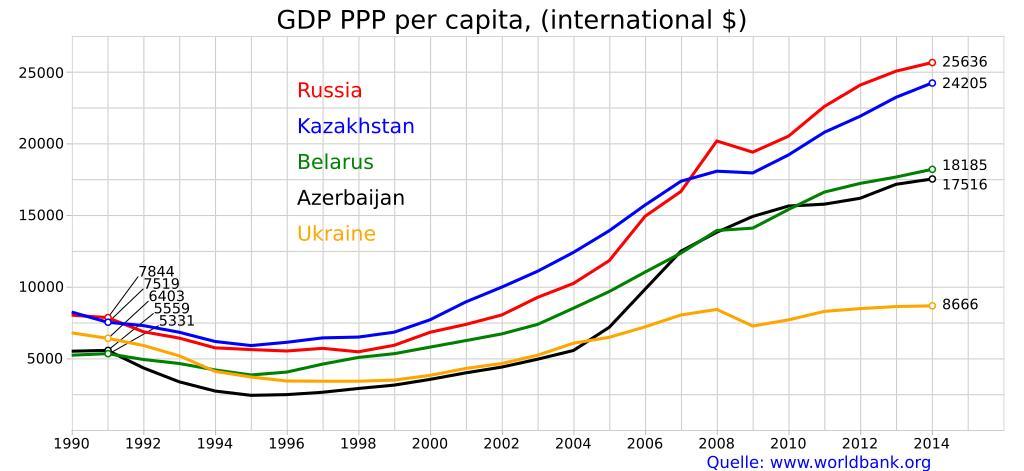 | Keywords: GDP PPP per capita CIS.svg translate yes en GDP per capita in PPP for Russia Kazakhstan Azerbaijan Belarus Ukraine Data source Worldbank de Bruttoinlandsprodukt kaufkraftbereinigt pro Kopf für Russland Kasachstan Azerbaidschan Belarus Ukraine Datenquelle Worldbank ru ВВП на душу населения по ППС ст ан Россия Казахстан Бела усь Азе байджан Ук аина Источник данных Всеми ный банк 2014-07-12 19 13 15 own Nikolai Twin HandSVG v cc-zero Uploaded with UploadWizard Economic statistics Gross domestic product SVG line charts SVG charts in English |
