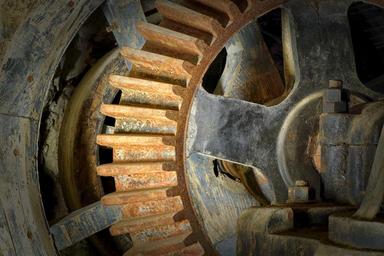 Keywords: gear cast iron wooden teeth wheels transmission rusty