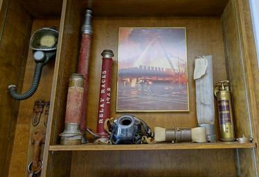 | Keywords: Gear and fire photo - Austin Fire Museum - Austin, Texas - DSC09339.jpg en Exhibit in the Austin Fire Museum - 401 East 5th Street Austin Texas USA 2015-11-19 15 22 29 own Daderot other versions cc-zero Collections of the Austin Fire Museum |