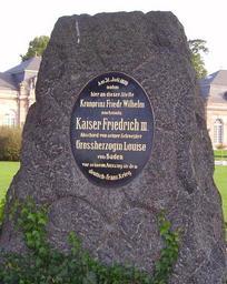 | Keywords: Gedenkstein Friedrich Wilhelm Schloss Schwetzingen.JPG Gedenkstein für Kronprinz Friedrich Wilhelm von Preußen den späteren Kaiser Friedrich III im Schwetzinger Schlossgarten own own photography Immanuel Giel 2006-09-25 ImageNote 1 315 325 450 608 1088 1369 2 <center>Am 31 Juli 1870<br>nahm<br>hier an dieser Stelle<br><big>Kronprinz Friedr Wilhelm</big><br>nachmals<br><big><big>Kaiser Friedrich III </big></big><br>Abschied von seiner Schwester<br><big>Grossherzogin Louise</big><br>von Baden<br>vor seinem Auszug in den<br>deutsch-franz Krieg <center> ImageNoteEnd 1 Memorial stones Monuments and memorials in Schwetzingen Schlossgarten Schwetzingen Monuments and memorials to Friedrich III Princess Louise of Prussia 31 July |
