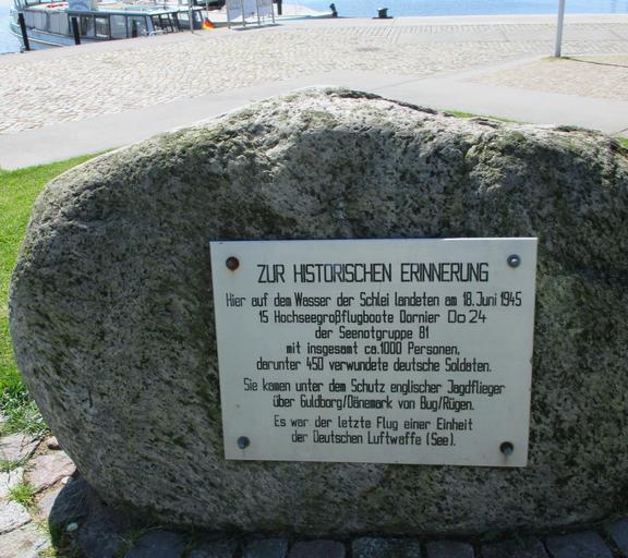 | Keywords: Gedenkstein Schleswig.jpg de Dieser Gedenkstein zum Andenken an den letzten Flug der deutschen Luftwaffe noch nach dem Ende des Zweiten Weltkrieges steht in Schleswig an der Schlei own Dr Stefan Brosig 2014-03-17 2015033010025348 Cc-zero Original upload log de wikipedia ftcg page de wikipedia Gedenkstein_Schleswig jpg wikitable - 20 21 26 March 2015 3 439 × 3 058 7 196 682 bytes Stefan59 w de <nowiki> Information Dieser Gedenkstein zum Andenken an den letzten Flug der deutschen Luftwaffe noch nach dem Ende des Zweiten Weltkrieges steht in Schleswig an der Schlei selbst fotografiert Dr Stefan Brosig </nowiki> |