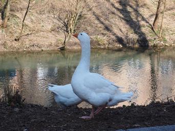Keywords: geese animals white livestock bird poultry domestic goose bank river riverside