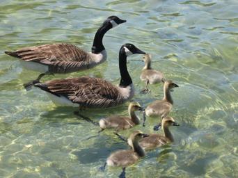 Keywords: geese canadian swimming water wildlife waterfowl birds fowl pond chicks young family
