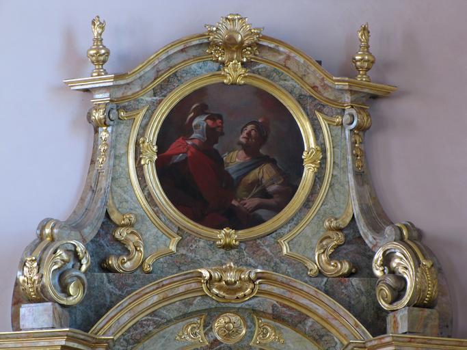 Keywords: Geispolsheim SteMarguerite90.JPG Alsace Bas-Rhin Geispolsheim Église Sainte-Marguerite Autel secondaire de Saint-Sébastien 1772 own 2015 Ralph Hammann cc-by-sa-4 0 Artwork / Œuvre d'art / Kunstwerk oil canvas 80 cm de diamètre Eglise Sainte-Marguerite Geispolsheim Autel secondaire PM67000092 IM67000193 object history Autel et retable par François Antoine Ketterer exécuté entre 1771 et 1772 ; tableau du martyr de saint Sébastien par Monique Danisch daté 1778 other versions Ralph Hammann PD-old accession number Taken with Canon PowerShot SX20 IS Photographs of Geispolsheim by Ralph Hammann Autel de Saint-Sébastien Geispolsheim Baroque church paintings in Alsace Objets monuments historiques in Bas-Rhin church paintings 18th-century church paintings in Alsace Paintings of Saint John the Apostle Paintings of Saint Paul in France 18th-century paintings of Saint Paul |