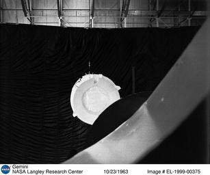 | Keywords: Gemini DVIDS696424.jpg en Gemini Rendezvous Docking Simulator suspended from the roof of the Langley Research Center's aircraft hanger closing in on its Agena target Francis B Smith wrote in his paper Simulators for Manned Space Research The rendezvous and docking operation of the Gemini spacecraft with the Agena and of the Apollo Command Module with the Lunar Excursion Module have been the subject of simulator studies for several years This figure illustrates the Gemini-Agena rendezvous docking simulator at Langley The Gemini spacecraft was supported in a gimbal system by an overhead crane and gantry arrangement which provided 6 degrees of freedom - roll pitch yaw and translation in any direction - all controllable by the astronaut in the spacecraft Here again the controls fed into a computer which in turn provided an input to the servos driving the spacecraft so that it responded to control motions in a manner which accurately simulated the Gemini spacecraft This is a photograph of the Gemini spacecraft approaching the Agena target in a final docking maneuver NASA Identifier L63-8864 2009-09-24 Glenn Research Center https //www dvidshub net/image/696424 696424 2012-10-10 13 45 WASHINGTON DC US PD-USGov Langley Research Center Images from DoD uploaded by Fæ |