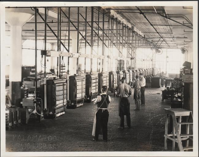 Keywords: kalamazoo public library michigan history photography gibson factory manufacturing assembly line general gas light company photo border Interior of General Gas Light Company. The Unit Heater Division, assembly line. Several unidentified workers. KPL catalogue number P-80. Interior of General Gas Light Company. The Unit Heater Division, assembly line. Several unidentified workers. KPL catalogue number P-80. |