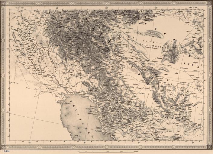 | Keywords: General Map of Central Asia - Plate 7 (1874).jpg Kurztitel General-Karte von Central-Asien; Vollständiger Titel General-Karte von Central-Asien bearbeitet nach den besten und neuesten Russischen und Englischen quellen <br />General-Karte von Central-Asien VII platte Maßstab 1 3 024 000; Maße 125 x 137 cm <br /> General Karte von Central Asien ist eine große detaillierte Karte im Jahre 1874 von der Militär Geographischen Institut Wien produziert Die Karte ist auf 12 getrennten Platten nummeriert I-XII; ein 13 Platte gibt einen berblick und eine nummerierte Anleitung wie die Teile zusammenpassen Die Karte deckt eine riesige Fläche im Nordwesten von der russischen Region nördlich des Kaspischen Meeres begrenzt ist; im Südwesten von heutigen Saudi-Arabien und Oman; nordöstlich von der westlichen Mongolei; und im Südosten von Gujarat Indien Der Titel Zeichenerklärung und Erklärung der Abkürzungen sind auf Tafel X in der unteren linken südwestlichen Ecke Sieben Schuppen in verschiedenen Längeneinheiten Englisch Italienisch Russisch Türkisch Persisch Chinesisch und metrischen vorgesehen sind an der Unterseite der Platte XII Die gezeigten Merkmale sind Städte und Gemeinden; nationalen und provinziellen Grenzen; Türme Burgen und Ruinen; bestehende und geplante Eisenbahnstrecken; Telegrafenleitungen; und Straßen Nach dem Titel wird die Karte mit den besten und neuesten russischen und englischen Quellen überarbeitet Russland und die British Empire waren Rivalen um Einfluss in Zentralasien in was später als The Great Game und sie spezielles Know-how hatten über die Region gewonnenen wissenschaftlichen und militärischen Expeditionen und Handelskontakte Short Title General Map of Central Asia; Full Title General map of Central Asia edited based on the best and the newest Russian and English sources <br />General map of Central Asia VII plate Scale 1 3 024 000; Dimension 125 × 137 cm <br /> General map of Central Asia is a large detailed map produced in 1874 by the Military Geographic Institute of Vienna The map is on 12 separate plates numbered I XII; a 13th plate gives an overview and a numbered guide to how the parts fit together The map covers a huge expanse bounded to the northwest by the region of Russia north of the Caspian Sea; to the southwest by present-day Saudi Arabia and Oman; to the northeast by western Mongolia; and to the southeast by Gujarat India The title key to symbols and explanation of abbreviations are on Plate X in the lower left-hand southwestern corner Seven scales in different distance units English Italian Russian Turkish Persian Chinese and metric are provided at the bottom of Plate XII The features shown include cities and towns; national and provincial borders; towers fortresses and ruins; existing and projected railroads; telegraph lines; and roads According to the title the map is revised with the best and newest Russian and English sources Russia and the British Empire were rivals for influence in Central Asia in what came to be called the Great Game and they had special expertise about the region gained from scientific and military expeditions and commercial contacts К аткое название Общая ка та Цент альной Азии; Полное название Общая ка та Цент альной Азии от едакти ованная с учетом лучших и новейших оссийских и английских источников <br />Общая ка та Цент альной Азии VII лист асштаб 1 3 024 000; Разме ы 125 × 137 см <br /> Общая ка та Цент альной Азии п едставляет собой большую под обную ка ту выпущенную в 1874 г Военным геог афическим институтом в Вене Ка та занимает 12 отдельных листов п онуме ованных от I до XII; на 13-м листе п едоставлена общая инфо мация и уководство с нуме ацией для соединения частей Ка та охватывает обши ный егион на севе о-западе он г аничит с те ито ией России к севе у от Каспийского мо я; на юго-западе с те ито ией сов еменной Саудовской А авии и Омана на севе о-востоке с Западной онголией а на юго-востоке с п овинцией Гуджа ат Индия азвание ключ к символам и пояснения к сок ащениям п иводятся на Листе X в левом нижнем углу юго-запад асштаб указан в семи азличных единицах изме ения английских итальянских усских ту ецких пе сидских китайских и мет ических в нижней части Листа XII В число объектов на ка те входят большие и малые го ода; г аницы госуда ств и п овинций; башни к епости и уины; существующие и п оекти уемые железные до оги; телег афные линии и до оги Из названия следует что ка та была пе есмот ена с учетом лучших и новейших оссийских и английских источников Российская и Б итанская импе ии сопе ничали за установление влияния в Цент альной Азии вели так называемую Большую иг у Они очень хо ошо знали егион благода я данным полученным в ходе научных и военных экспедиций а также в езульта