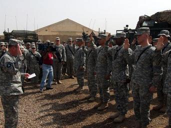 | Keywords: General reenlists Warriors DVIDS80839.jpg en Gen David Petraeus commander Multi-National Forces Iraq gives the oath or reenlistment to Soldiers from 2nd Stryker Brigade Combat Team Warrior 25th Infantry Division Multi-National Division Baghdad during his visit March 12 U S Army photo/Sgt 1st Class Luis Montanez 2008-03-12 https //www dvidshub net/image/80839 80839 2008-03-18 14 43 TAJI IQ PD-USGov David Petraeus 25th Infantry Division United States Images from DoD uploaded by FĂŚ | ||||