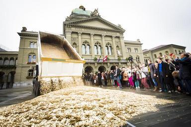 | Keywords: grundeinkommen bedingungsloses grundeinkommen bedingungslosesgrundeinkommen generation grundeinkommen generationgrundeinkommen volksinitiative bundesplatz bern schweiz basic income basicincome outdoor FOTO: STEFAN BOHRER ORT: BERN 04.10.2013: Zur erfolgreichen Einreichung der “Eidgenössischen Volksinitiative für ein bedingungsloses Grundeinkommen” schüttet die Generation Grundeinkommen am 4. Oktober 2013 um 10.15 Uhr 8 Millionen „Fünferli“ auf den Bundesplatz. Für jede Person in der Schweiz eins. Das sind 15 Tonnen. Welche Rolle spielt das Geld im Leben? Ist das Geld der Anreiz zum Arbeiten? Was würde Sie arbeiten, wenn für Ihr Einkommen gesorgt wäre? Wie hoch soll das Grundeinkommen sein? Was heisst „menschenwürdig leben“? Und welches ist die beste Art der Finanzierung? Was wird das Grundeinkommen bewirken? Beim Einzelnen? In der Gesellschaft und Wirtschaft? Arbeitet dann niemand mehr? Oder erfolgt ein Entwicklungs- und Innovationsschub? Das Geld ist da. Die Frage ist: Was tun wir? Die Entrollung der 8 Millionen Fünfrappenstücke fand im Safe der ehemaligen Schweizerischen Volksbank in Basel statt. In 10 Tagen haben 75 Menschen innert 400 Stunden die 8 Millionen “Fünferli” aus ihren 160’000 Papierrollen befreit. Am 4. Oktober 2013 lag das Geld für alle sichtbar und begehbar ausgebreitet auf dem Bundesplatz in Bern. Vom 5. bis 14. Oktober war die "Geldberg-Performance“ der Generation Grundeinkommen im Kaffeehaus “unternehmen mitte” in Basel zu sehen. Mehr Info: www.generation-grundeinkommen.ch www.grundeinkommen.ch www.bedingungslos.ch Kontakt: generation@grundeinkommen.ch FOTO: STEFAN BOHRER ORT: BERN 04.10.2013: Zur erfolgreichen Einreichung der “Eidgenössischen Volksinitiative für ein bedingungsloses Grundeinkommen” schüttet die Generation Grundeinkommen am 4. Oktober 2013 um 10.15 Uhr 8 Millionen „Fünferli“ auf den Bundesplatz. Für jede Person in der Schweiz eins. Das sind 15 Tonnen. Welche Rolle spielt das Geld im Leben? Ist das Geld der Anreiz zum Arbeiten? Was würde Sie arbeiten, wenn für Ihr Einkommen gesorgt wäre? Wie hoch soll das Grundeinkommen sein? Was heisst „menschenwürdig leben“? Und welches ist die beste Art der Finanzierung? Was wird das Grundeinkommen bewirken? Beim Einzelnen? In der Gesellschaft und Wirtschaft? Arbeitet dann niemand mehr? Oder erfolgt ein Entwicklungs- und Innovationsschub? Das Geld ist da. Die Frage ist: Was tun wir? Die Entrollung der 8 Millionen Fünfrappenstücke fand im Safe der ehemaligen Schweizerischen Volksbank in Basel statt. In 10 Tagen haben 75 Menschen innert 400 Stunden die 8 Millionen “Fünferli” aus ihren 160’000 Papierrollen befreit. Am 4. Oktober 2013 lag das Geld für alle sichtbar und begehbar ausgebreitet auf dem Bundesplatz in Bern. Vom 5. bis 14. Oktober war die "Geldberg-Performance“ der Generation Grundeinkommen im Kaffeehaus “unternehmen mitte” in Basel zu sehen. Mehr Info: www.generation-grundeinkommen.ch www.grundeinkommen.ch www.bedingungslos.ch Kontakt: generation@grundeinkommen.ch |