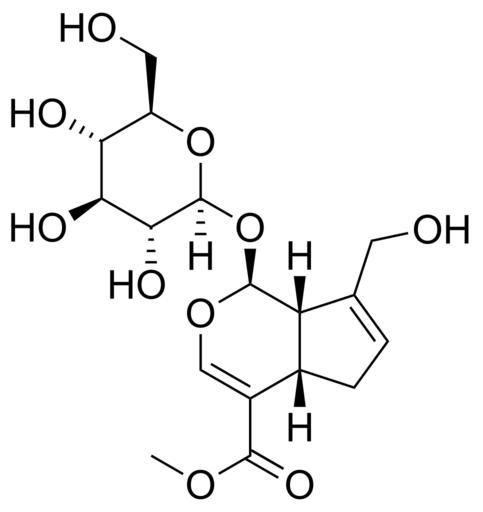 Keywords: Geniposide structure.svg Chemical structure of Geniposide Own 15 35 27 May 2011 UTC Ed Edgar181 200px Iridoids Glucosides Methyl esters