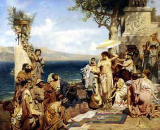 | Keywords: Genrich Ippolitovich Semiradsky - Roma, 1882.jpg artwork Roma oil on canvas in 21 5 26 75 signed titled and dated verso according to the auction house Estimate 15 000 - 25 000 Later versions see Phryne at the Poseidonia in Eleusis 1889 http //www trinityfinearts com/content/item_detail php id 4283 trinityfinearts com 1882 attributed to <gallery> File Semiradzki - Phryne on the Poseidon's celebration in Eleusis fragment jpg Phryne at the Poseidonia in Eleusis fragment 1889 File Genrich Ippolitovich Semiradsky - Roma 1889 jpg 1889 </gallery> PD-old-100 Group paintings with nude females and clothed males Siemiradzki 1882 paintings from Russia Phryne by Henryk Siemiradzki Harps in art |