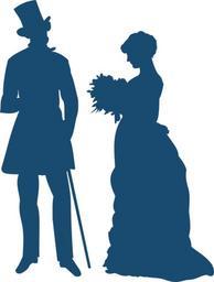 Keywords: gentleman lady victorian bouquet couple friendship love man old-fashioned silhouette toilet woman blue