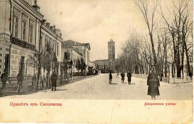| Keywords: Gentry Street in Smolensk.jpg en Street gentry in Smolensk Right - the garden Blon On the left - the building of Nobility now - the Philharmonic In the background - the building of City Council now - the house ru Дво янская улица в Смоленске Сп ава - сад Блонье Слева - здание Дво янского соб ания ныне - Фила мония а заднем плане - здание го одской думы ныне - жилой дом О игинальная отк ытка е установлены before 1917 года PD-RusEmpire 20th-century postcards of Russia Postcards of Smolensk |