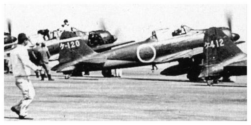 Keywords: Genzan Zero.jpg en A6M fighters of the Imperial Japanese Navy's Genzan Air Group at Genzan now called Wonsan Korea in 1940 or 1941 These are Reisen 21s constructed by the Nakajima company http //www j-aircraft org/smf/index php topic 3137 0 LRA Shigeru Nohara 1940-1941 PD-Japan-oldphoto Genzan Air Group Mitsubishi A6M2b