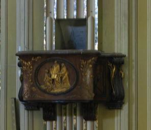 Keywords: Genzano Trinita pulpito.jpg Genzano di Roma Pulpito ligneo nella navata della Chiesa della SS Trinità XVIII secolo Own 2007-11-10 F chiodo blurry Santissima Trinità Genzano di Roma Wooden pulpits in Italy Pulpits in Lazio