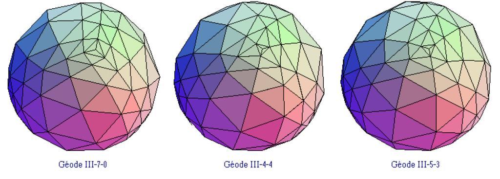 Keywords: Géodes III.PNG Trois exemples de géodes de paramètre III in english geodesic domes 2005-09-14 own assumed Papy77 Theory of the dome Spheres