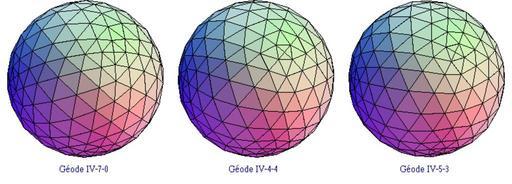 Keywords: Géodes IV.PNG Trois exemples de géodes de paramètre IV in english geodesic domes 2005-09-14 own assumed Papy77 Theory of the dome Spheres