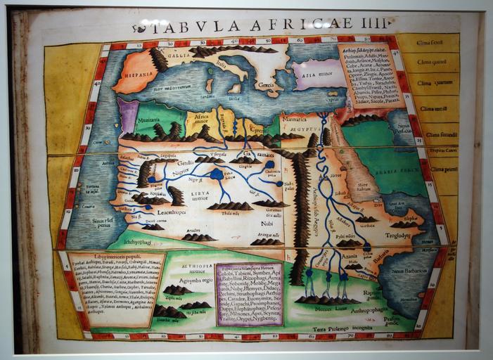 | Keywords: Geographia by Ptolemy, Aphricae Tabula IIII, 1540 Basel edition - Maps of Africa - Robert C. Williams Paper Museum - DSC00631.JPG en Exhibit in the Robert C Williams Paper Museum Atlanta Georgia USA This work is old enough so that it is in the public domain Photography was permitted in the museum without restriction 2014-03-20 13 42 42 own Daderot PD-old-100 cc-zero Maps of Africa in the Robert C Williams Paper Museum Uploaded with UploadWizard Aphricae Tabula Ptolemaic Africa | ||||