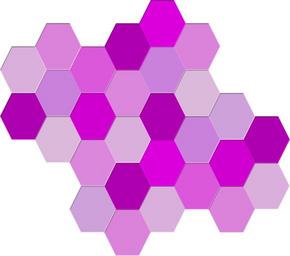 Keywords: geometric hexagons purple shades shapes hues tones monochromatic 3d monochrome pattern design tiles random form structure texture connect formation violet colorful lavender lilac plum heather orchid iris transparent