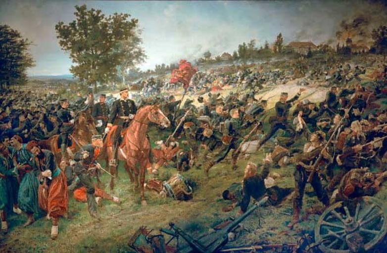 | Keywords: Georg Bleibtreu - Die Württemberger in der Schlacht bei Wörth (1880).jpg Schlacht bei Wörth am 6 August 1870 griffen Truppen der Württembergischen Felddivision Generalmajor Hugo von Obernitz erfolgreich die französischen Stellungen vor Elsasshausen und FrÅ“schwiller an Der Künstler Georg Bleibtreu 1828 “1892 begleitete die Truppen im Auftrag des württembergischen Königs und hielt die Ereignisse fest Öl auf Leinwand 158 x 236 cm 1880 http //www kunst-fuer-alle de/deutsch/kunst/kuenstler/kunstdruck/georg-bleibtreu/16112/1/111380/die-wuerttemberger-in-der-schlacht-bei-woerth/index htm Georg Bleibtreu other versions Custom license marker 2014 12 28 pd-old Uploaded with UploadWizard Battle of Wörth Military of Württemberg |