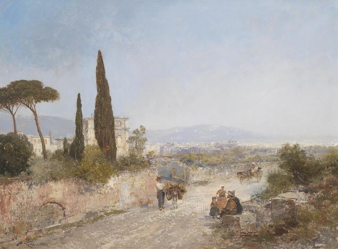 | Keywords: Georg Fischhof Landschaft mit Blick auf Florenz.jpg Weite Landschaft mit Blick auf Florenz Pseudonym oil on canvas 74 5 x 101 cm http //www dorotheum com Dorotheum by 1914 creator Georg Fischhof Images from Dorotheum Georg Fischhof Paintings of Florence Landscape paintings of Italy Paintings of country roads PD-old-auto-1923 1914 |