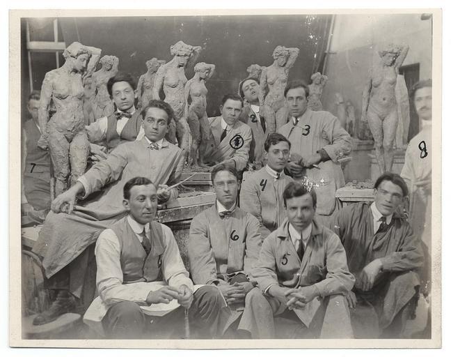 Keywords: smithsonian institution smithsonianinstitution sculptor class sculpture portrait men american sculptor americansculptor sculptors in a group sculptorsinagroup sculptors artists statues group studio indoors lober rubinstien sculptures artists classical preppy bl loberrubinstiensculpturesartistsclassicalpreppybl archives of american art archivesofamericanart monochrome Description: Lober among a group of eleven fellow sculpture students. Some individuals are numbered for identification. Identification on verso (handwritten): 1.[crossed out] 2. Rubinstine, 3. Abe Rosentine; 4. Patronni; 5. Salarno; 6. Georg Lober; 7. Rannus; About 1911; 8. Lipshits. Lober, Georg John, 1892-1961 Creator/Photographer: Unidentified photographer Medium: Black and white photographic print Dimensions: 10 cm x 13 cm Date: c. 1911 Persistent URL: www.aaa.si.edu/collections/images/detail/georg-j-lober-an... Repository: Archives of American Art Collection: Georg John Lober papers, [ca. 1915-1970] Accession number: aaa_lobegeor_4955 Description: Lober among a group of eleven fellow sculpture students. Some individuals are numbered for identification. Identification on verso (handwritten): 1.[crossed out] 2. Rubinstine, 3. Abe Rosentine; 4. Patronni; 5. Salarno; 6. Georg Lober; 7. Rannus; About 1911; 8. Lipshits. Lober, Georg John, 1892-1961 Creator/Photographer: Unidentified photographer Medium: Black and white photographic print Dimensions: 10 cm x 13 cm Date: c. 1911 Persistent URL: www.aaa.si.edu/collections/images/detail/georg-j-lober-an... Repository: Archives of American Art Collection: Georg John Lober papers, [ca. 1915-1970] Accession number: aaa_lobegeor_4955 |
