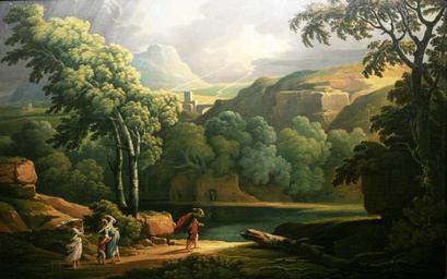 Keywords: george barret art artistic painting oil on canvas artistry landscape nature outside trees country countryside sky clouds beautiful plants forest river stream water woods people storm lightning